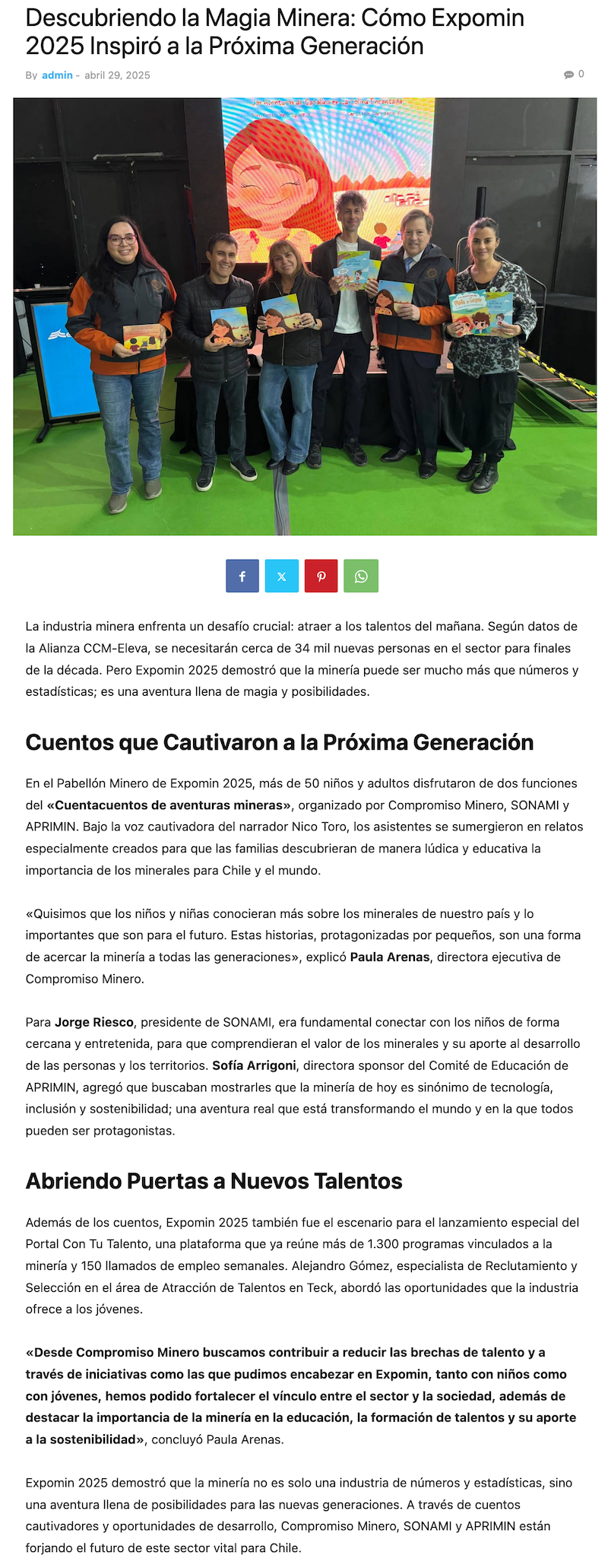 Compromiso Minero inspiró a menores y jóvenes con sus actividades en Expomin 2025 - (revistacrisol.cl)