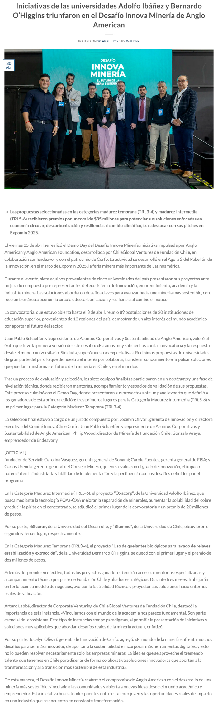 Miércoles, 30 de Abril de 2025