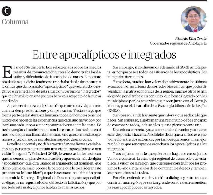 Entre apocalípticos e integrados - (El Mercurio de Antofagasta)