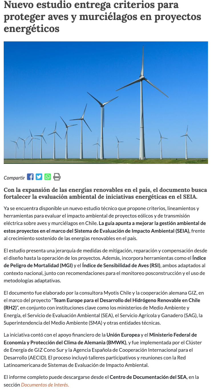 Nuevo estudio entrega criterios para proteger aves y murciélagos en proyectos energéticos - (electromineria.cl)