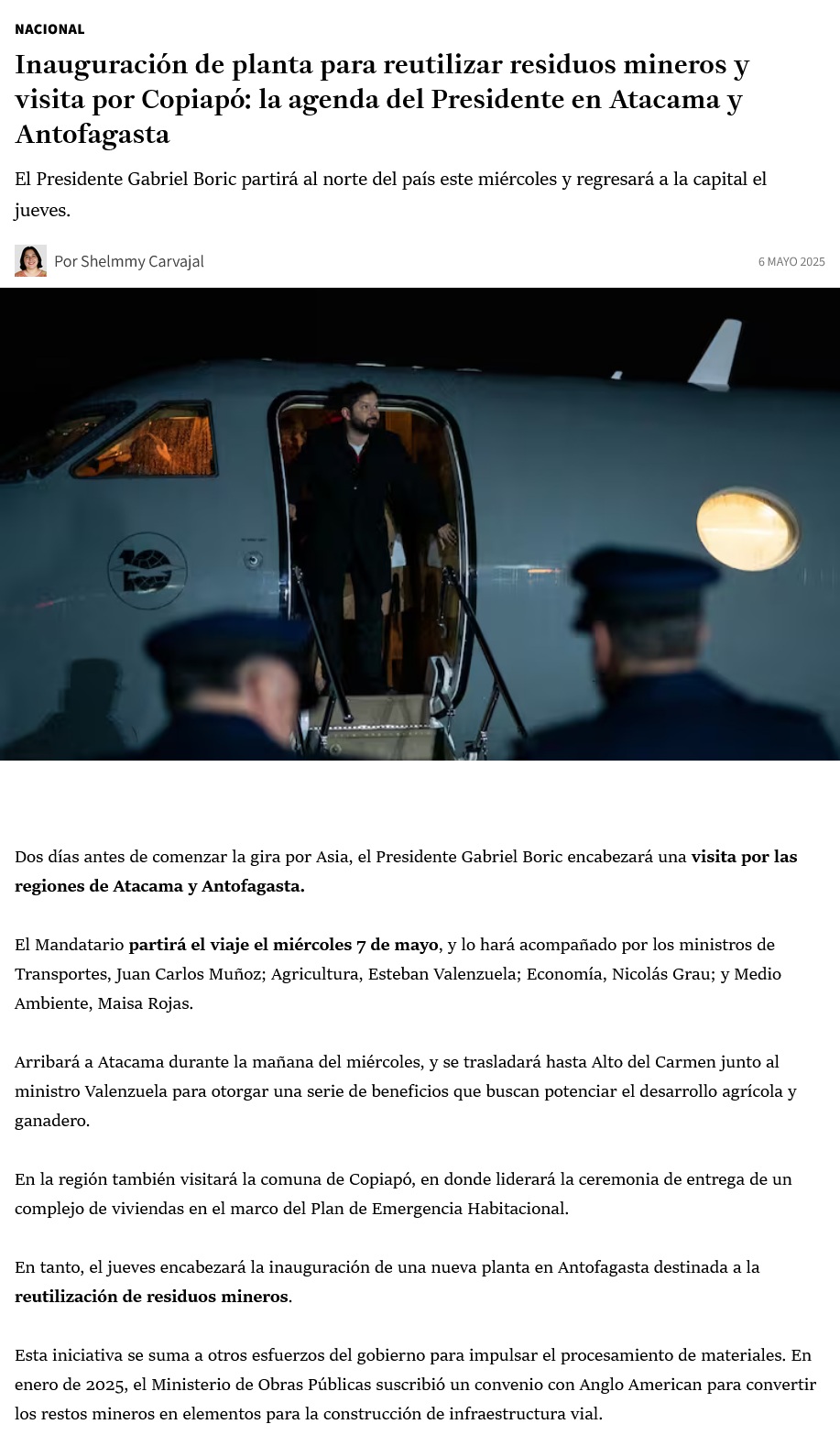 Boric inaugura mañana la primera planta de reciclaje de neumáticos mineros de Michelin - (El Mercurio de Antofagasta)