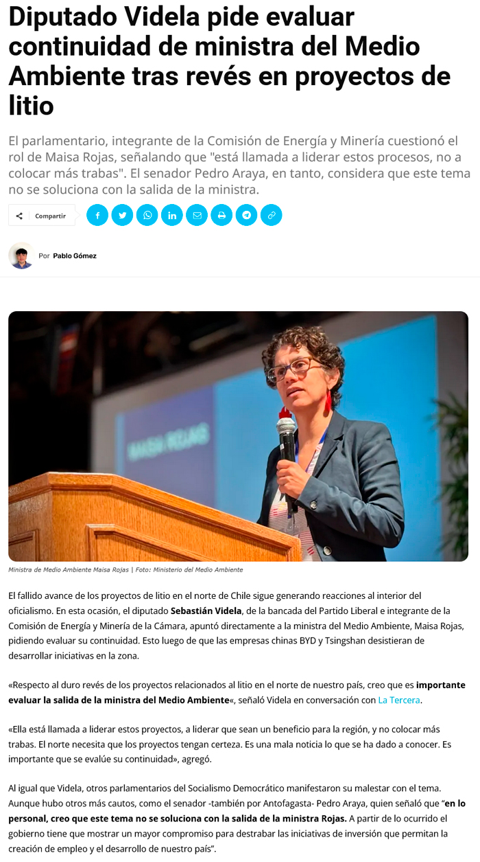 Socialismo Democrático cuestiona permanencia de Maisa Rojas en el gobierno por fallido proyecto de litio - (La Tercera)