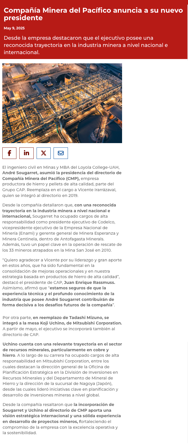 Roberto de Andraca asume vicepresidencia del directorio y André Sougarret es nombrado presidente de CMP - (Diario Financiero)