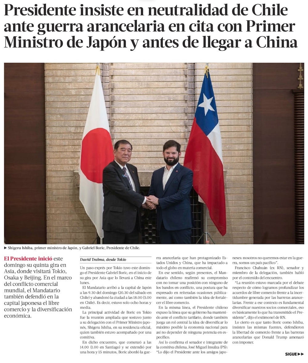 Boric inicia gira a Asia y apuesta por mantener neutralidad en medio de guerra arancelaria entre China y EE.UU. - (La Tercera)