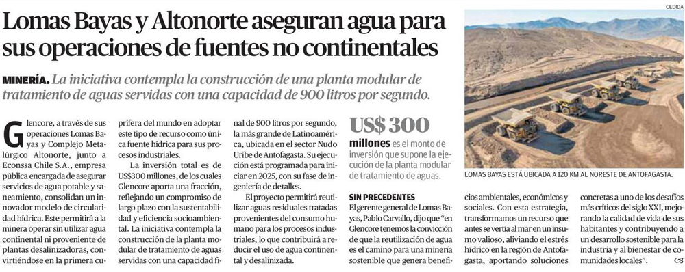 Hito global en minería verde: Innovador proyecto de Glencore y Econssa asegura agua en minería sin usar fuentes continentales - (elamerica)