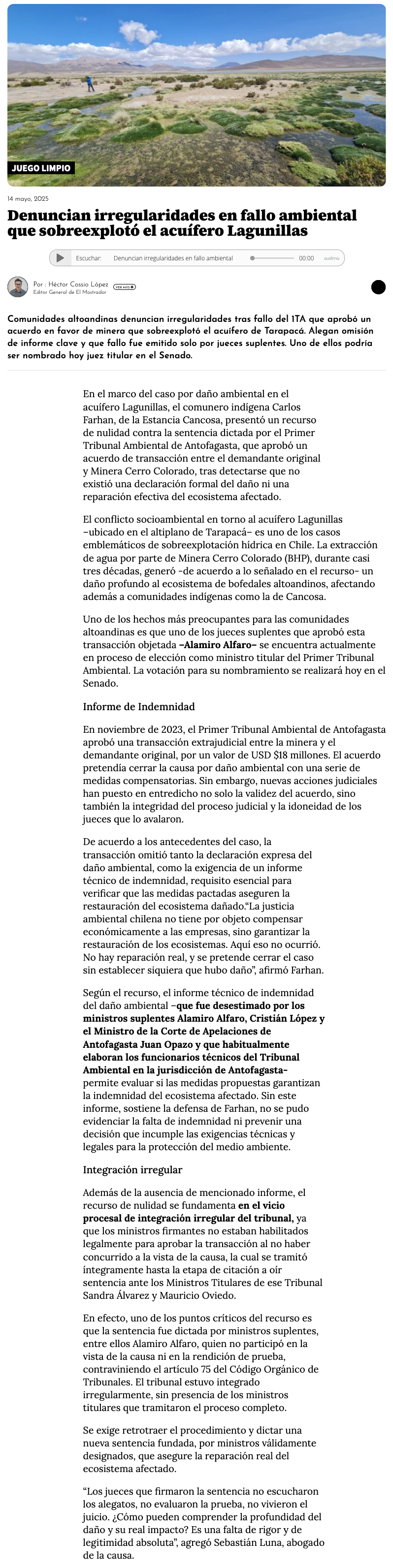 Comunidades altoandinas denuncian irregularidades en fallo por acuífero sobreexplotado - (antofagasta.tv)