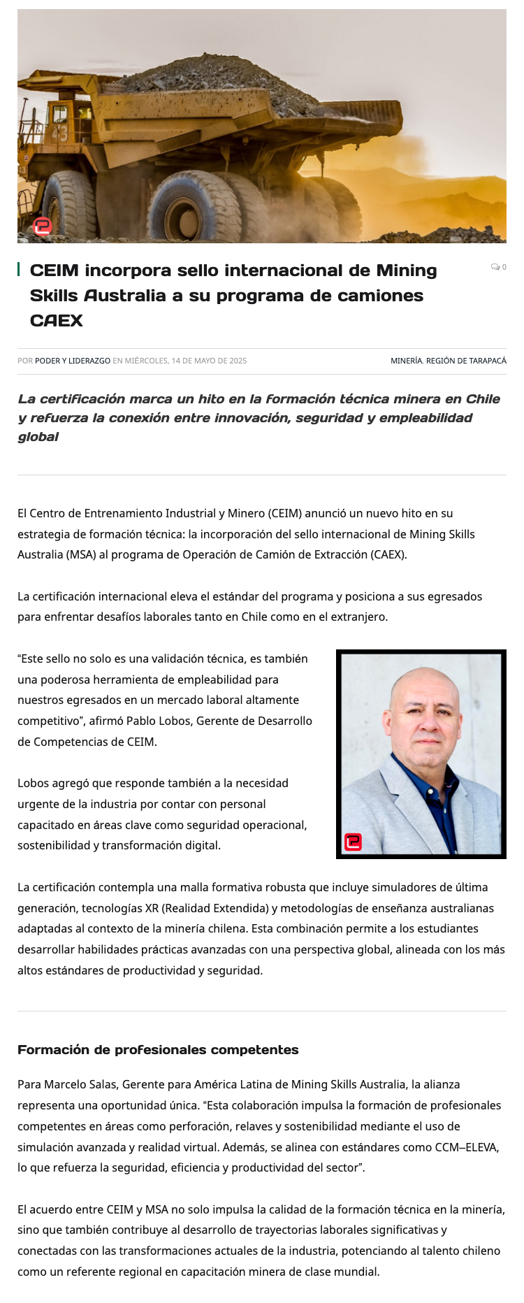 Programa de Operación de Camión de Alto Tonelaje de CEIM incorpora sello internacional bajo estándar australiano - (portalinnova.cl)