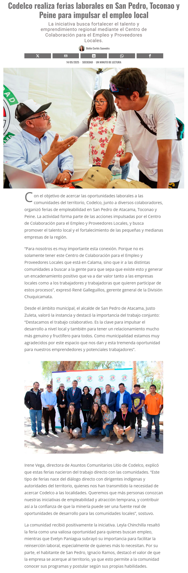 Codelco acerca oportunidades de empleabilidad - (La Estrella)