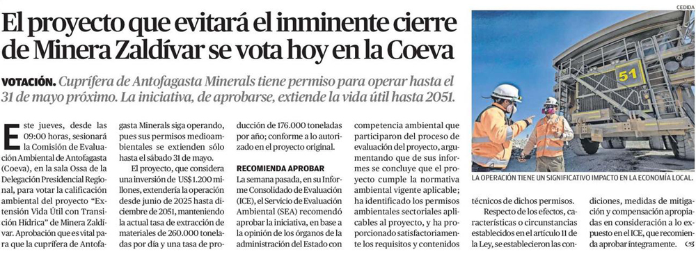 Zaldívar vive jornada clave: Coeva de Antofagasta define este jueves si mina del grupo Luksic podrá seguir operando - (Pulso)