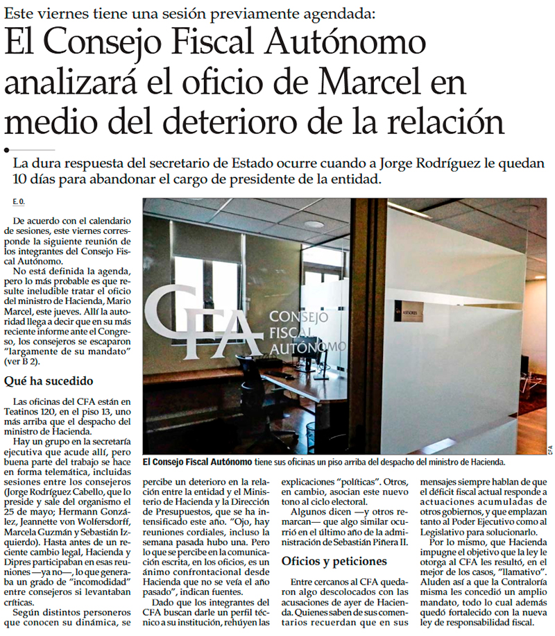 Escala conflicto: Hacienda critica tono del CFA “inusualmente severo” y acusa contradicciones - (El Mercurio de Santiago)