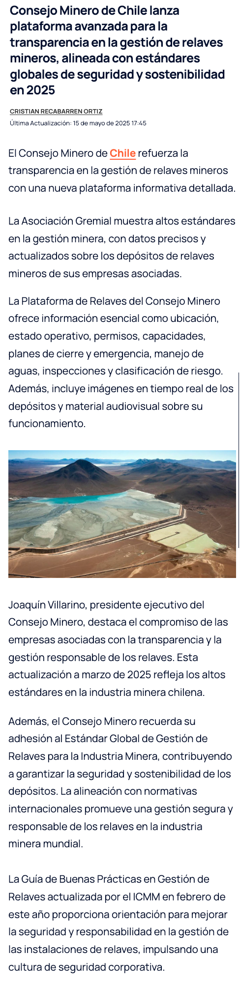 Consejo Minero actualiza su Plataforma de Relaves a 2025 - (Nostálgica Online)