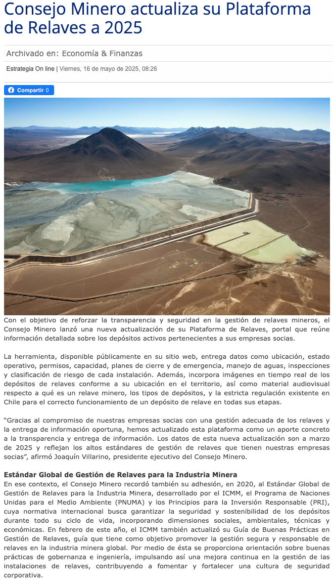 Consejo Minero actualiza su Plataforma de Relaves al 2025 - (regionesnoticias.cl)