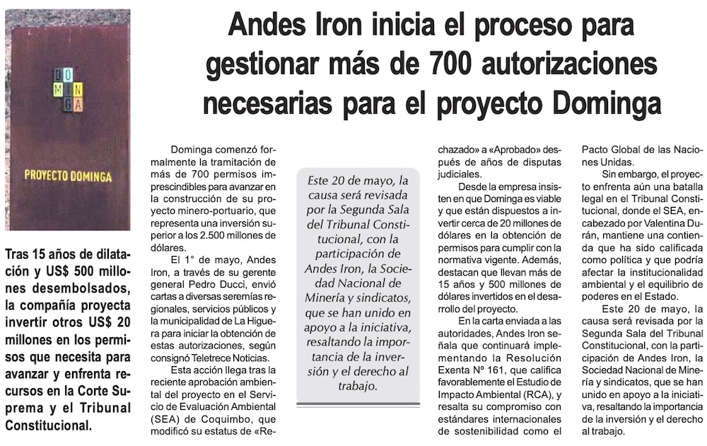 Andes Iron arremete y comienza a tramitar más de 700 permisos - (El Día)