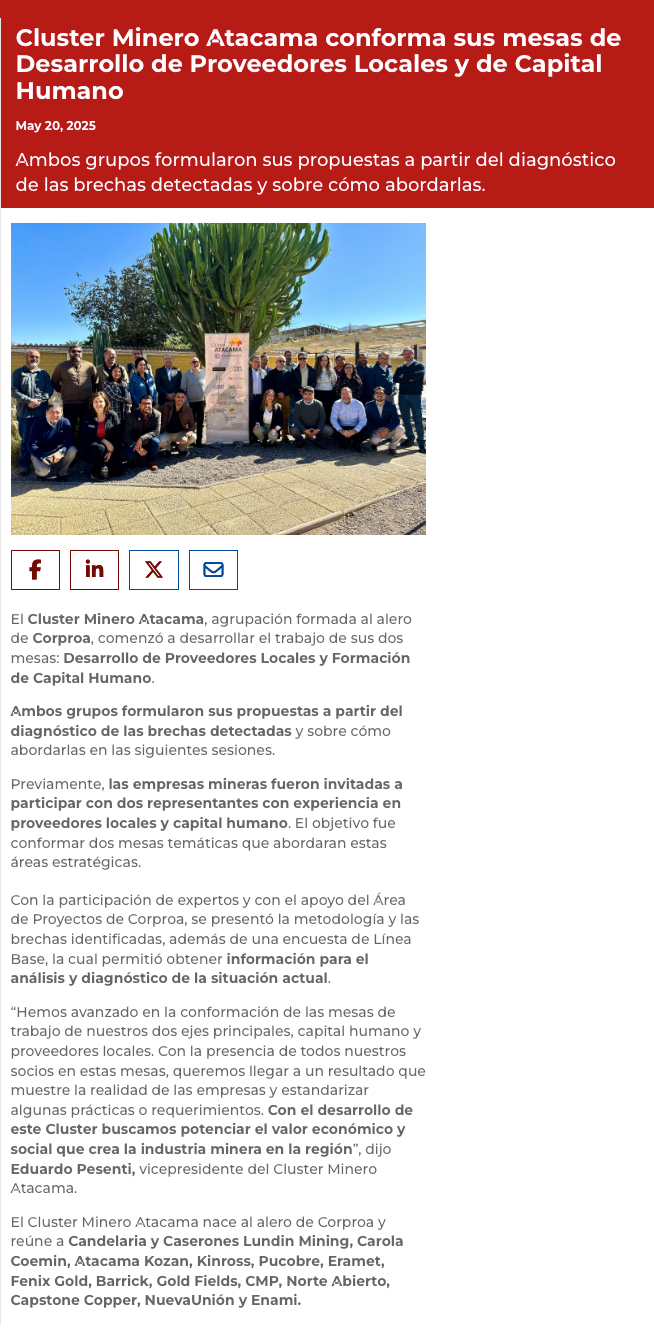 Cluster Minero Atacama conformó sus mesas de Desarrollo de Proveedores Locales y de Capital Humano - (atacamanoticias)