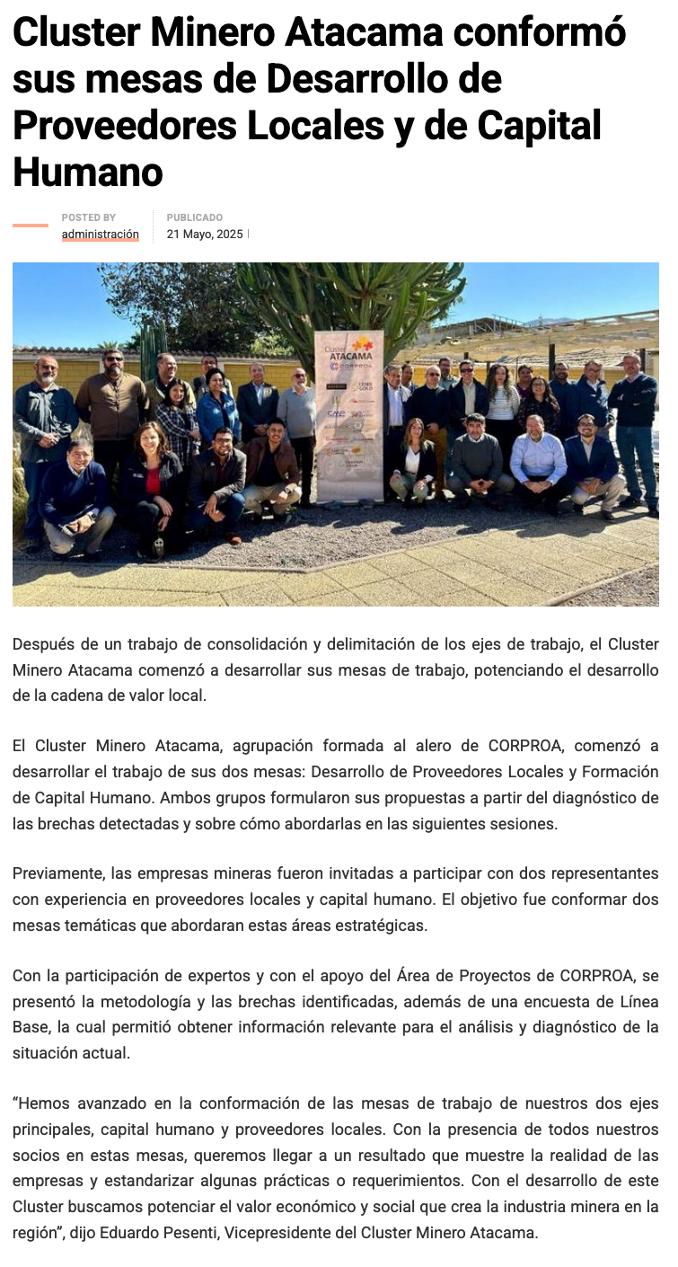 Cluster Minero Atacama conforma sus mesas de Desarrollo de Proveedores Locales y de Capital Humano - (mch.cl)