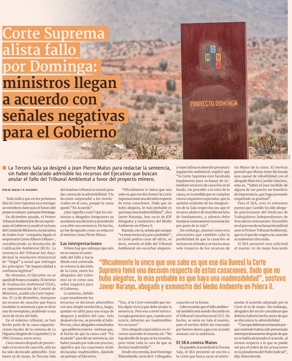 SEA recusa a ministro Matus para que no redacte resoluciones por caso Dominga - (La Región)
