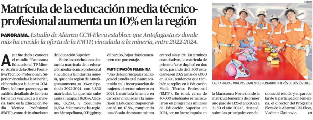 Matrícula de la educación media técnico-profesional aumenta un 10% en la región - (El Mercurio de Antofagasta)