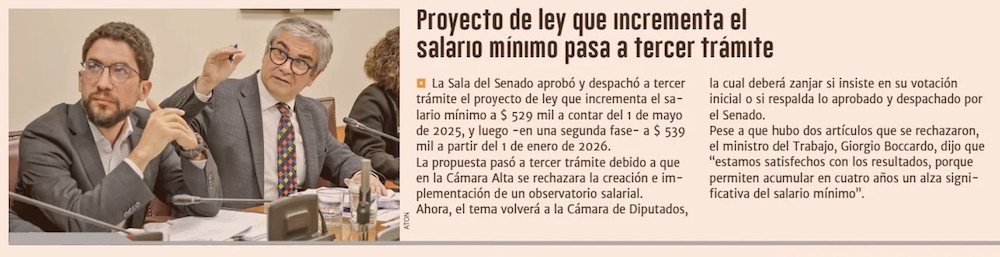 Sueldo mínimo: Senadores rechazan nuevo ente público y reajuste se aplaza hasta junio - (El Mercurio de Santiago)