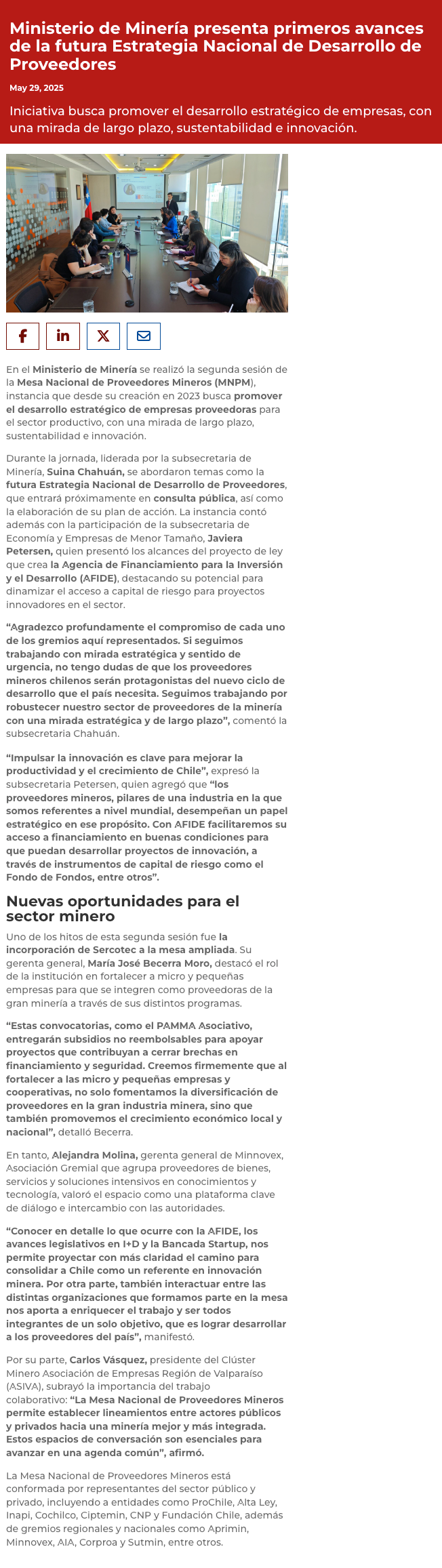 Ministerio de Minería presenta primeros avances de la futura Estrategia Nacional de Desarrollo de Proveedores - (g5noticias.cl)