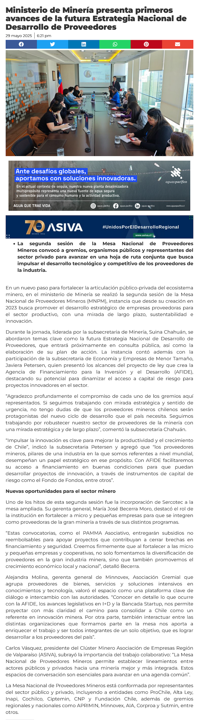 Ministerio de Minería presenta primeros avances de la futura Estrategia Nacional de Desarrollo de Proveedores - (mch.cl)