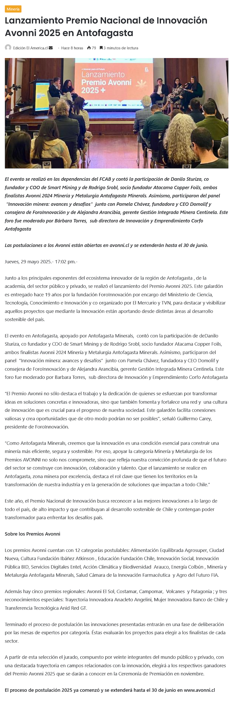 Lanzamiento Premio Nacional de Innovación Avonni 2025 en Antofagasta - (region2)
