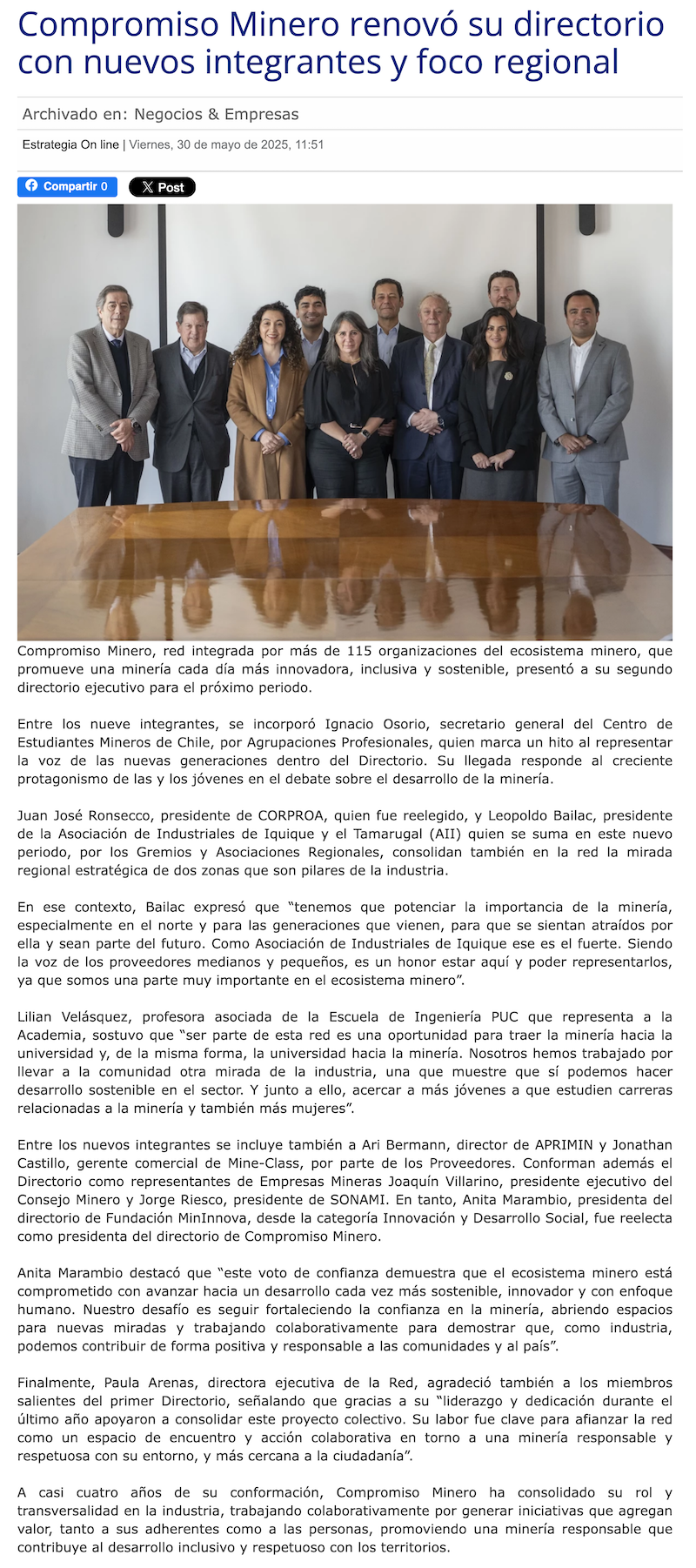 Compromiso Minero renovó su directorio con nuevos integrantes y foco regional - (Nostálgica Online)