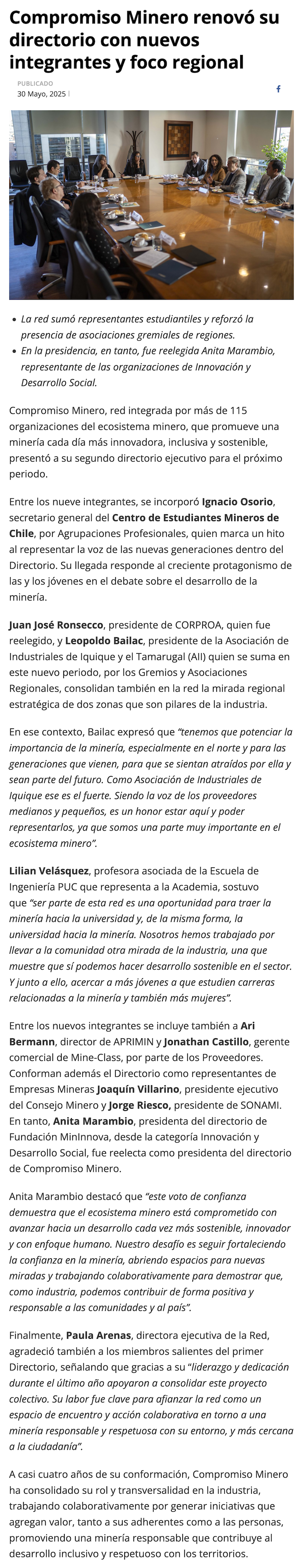 Compromiso Minero renovó a directorio y reeligió como presidenta a Anita Marambio - (revistacrisol.cl)