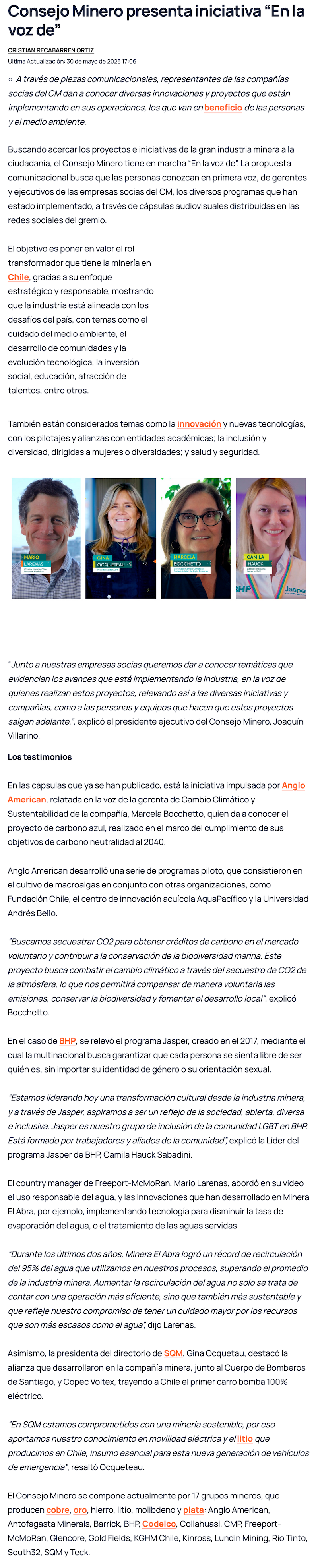 Consejo Minero presenta iniciativa “En la voz de” - (atacamaenlinea.cl)