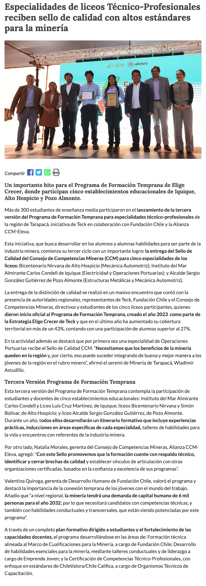 Más de 300 estudiantes se suman a iniciativa educativa impulsada por Teck y CCM-Eleva - (norteonline.cl)