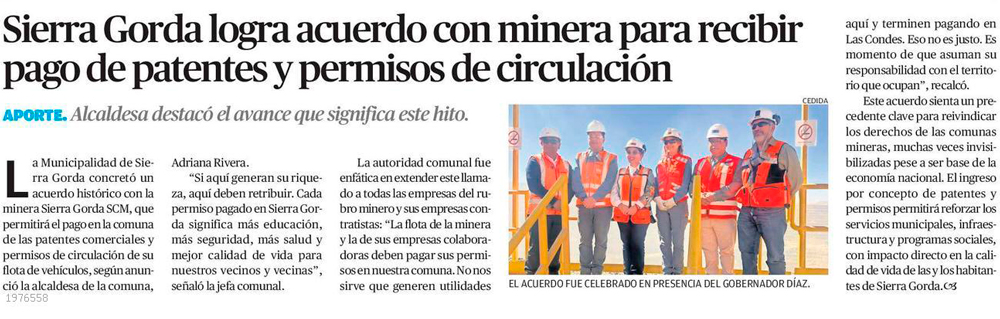 Alcaldesa de Sierra Gorda concretó acuerdo con minera para que permisos de circulación se paguen en la comuna - (calamaenlinea.cl)