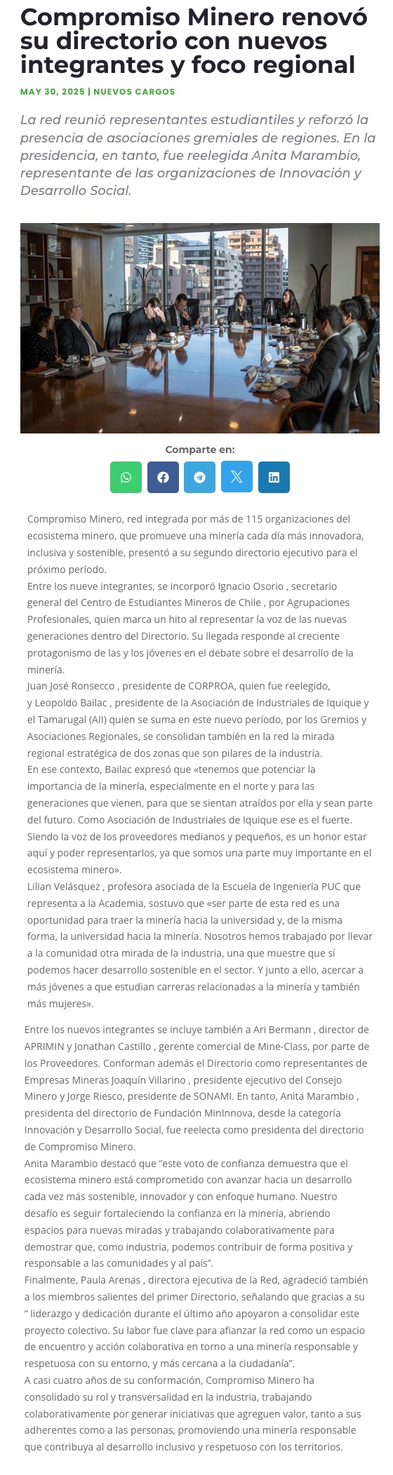 Compromiso Minero renovó su directorio con nuevos integrantes y foco regional - (atacamaenlinea.cl)