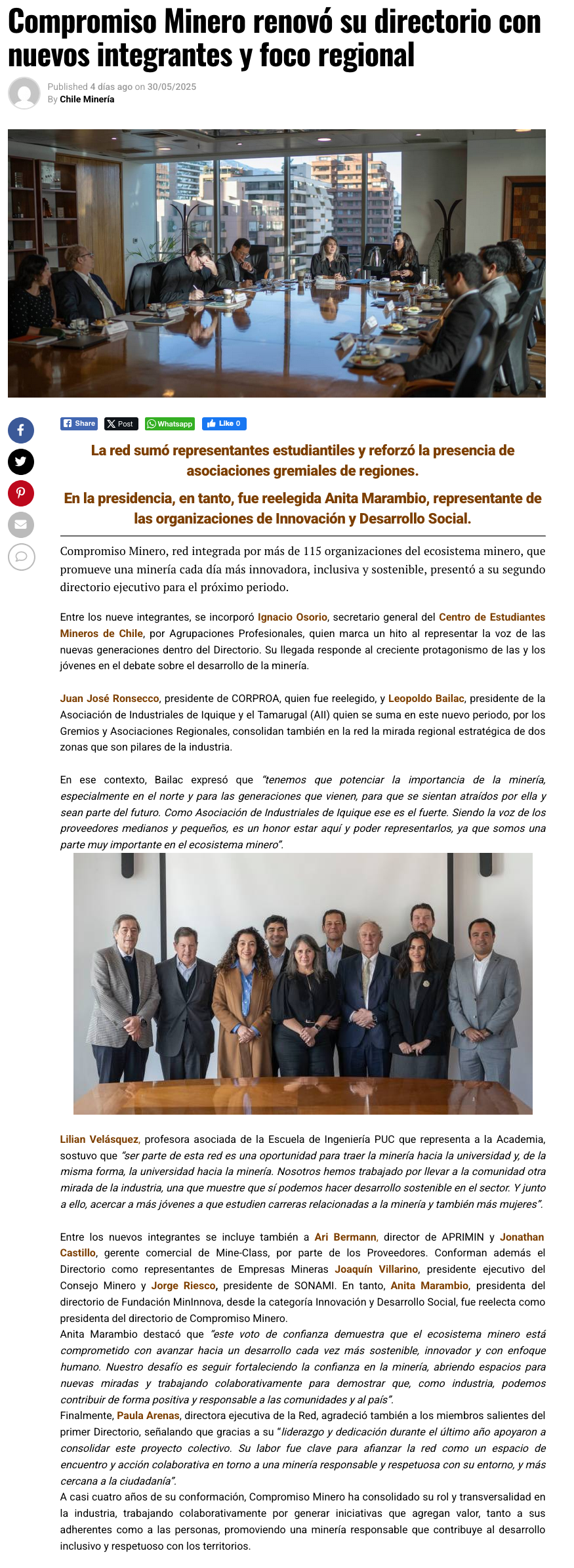 Compromiso Minero renovó su directorio con nuevos integrantes y foco regional - (atacamaenlinea.cl)