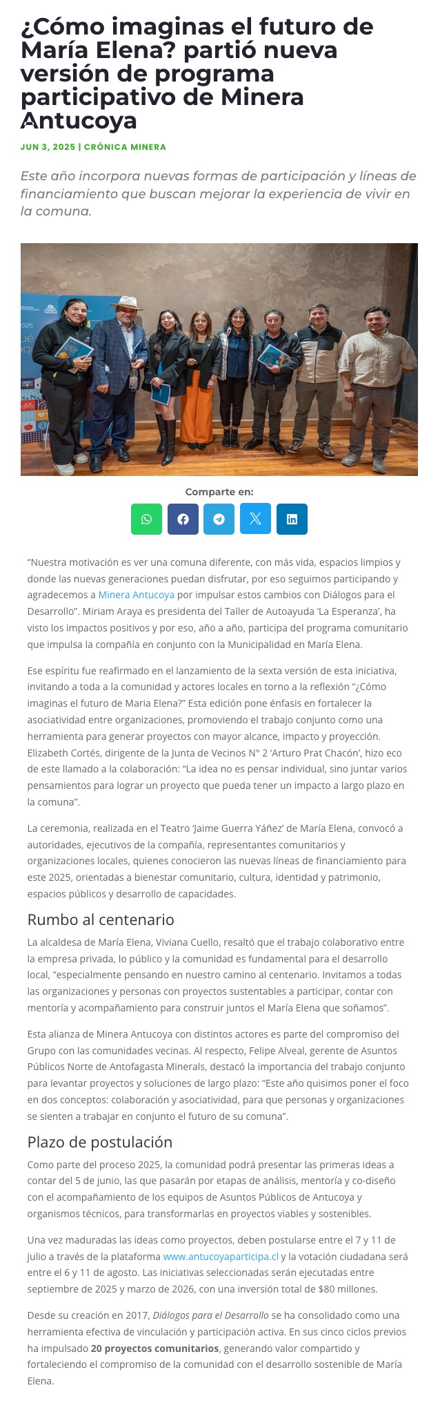 ¿Cómo imaginas el futuro de María Elena?: Partió nueva versión de programa participativo de Minera Antucoya - (timeline)