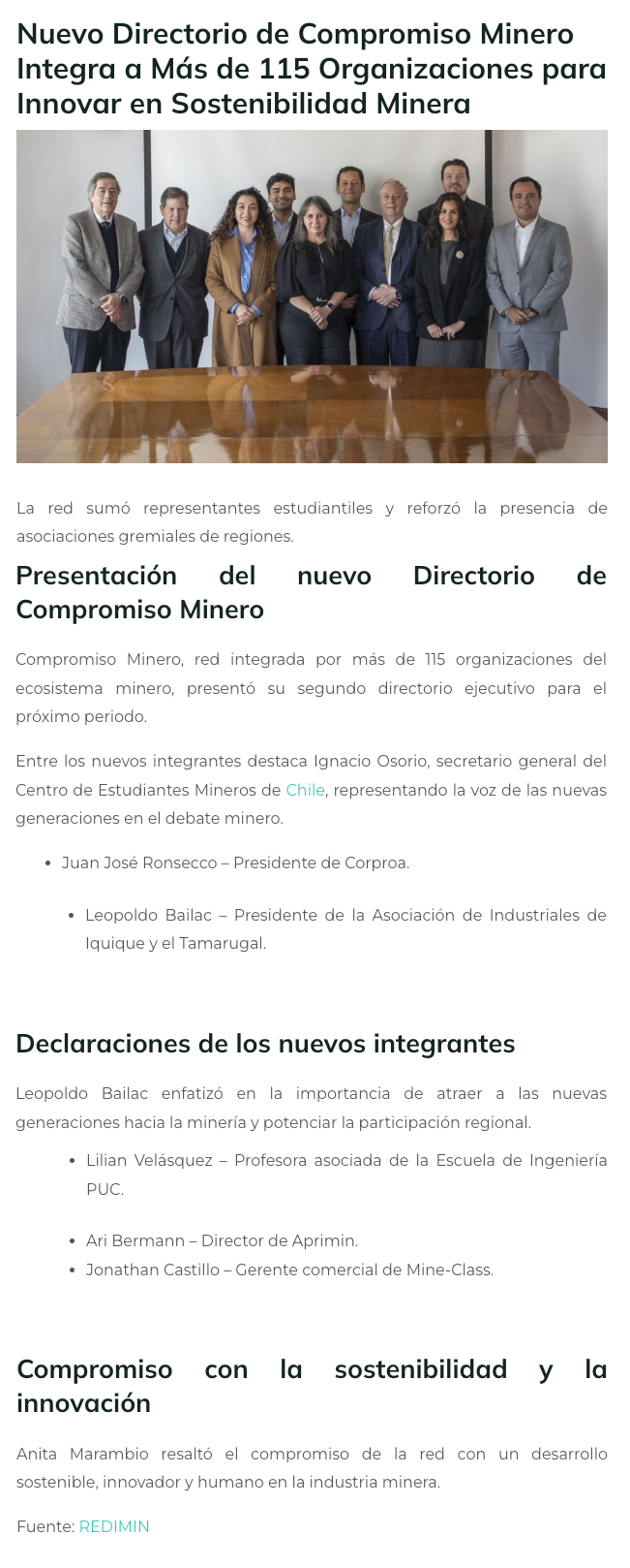 Compromiso Minero renovó su directorio con nuevos integrantes y foco regional - (nuevaminería online)