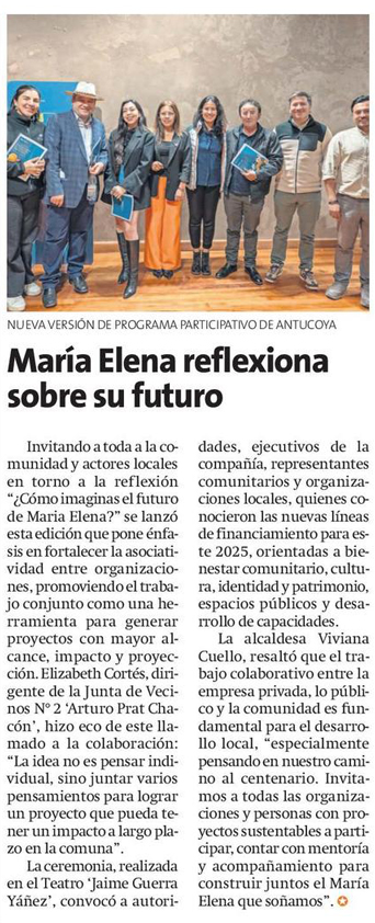 ¿Cómo imaginas el futuro de María Elena? partió nueva versión de programa participativo de Minera Antucoya - (electromineria.cl)