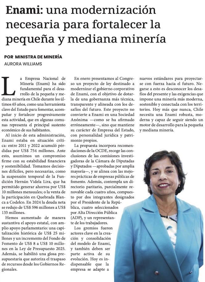 Enami: una modernización necesaria para fortalecer la pequeña y mediana minería del Chile profundo - (El Mercurio de Antofagasta)