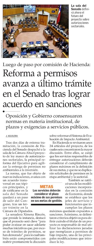 Reforma a permisos sectoriales supera etapa en comisión de Hacienda del Senado y pasa a Sala - (Diario Financiero)