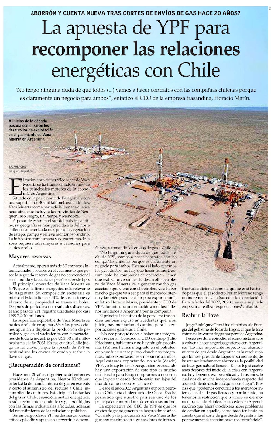 CEO de YPF y la posibilidad de hacer negocios de petróleo y gas con Chile: “Debería haber una integración, no tengo dudas" - (Pulso)