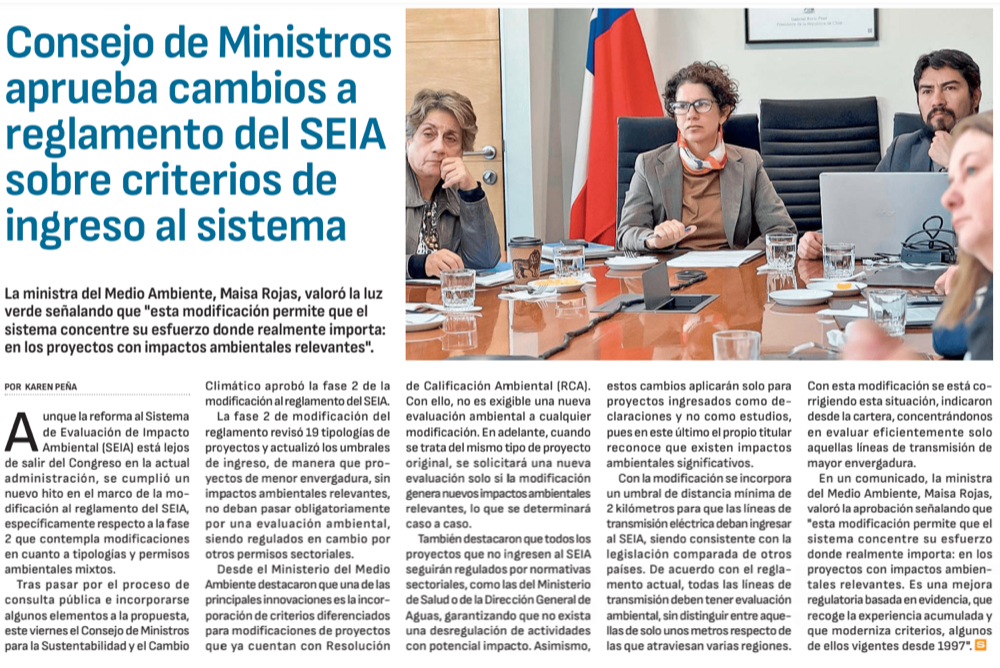 Aprueban cambios a reglamento del SEIA que evitarán tramitar modificaciones a proyectos que ya cuenten con permiso ambiental - (Pulso)