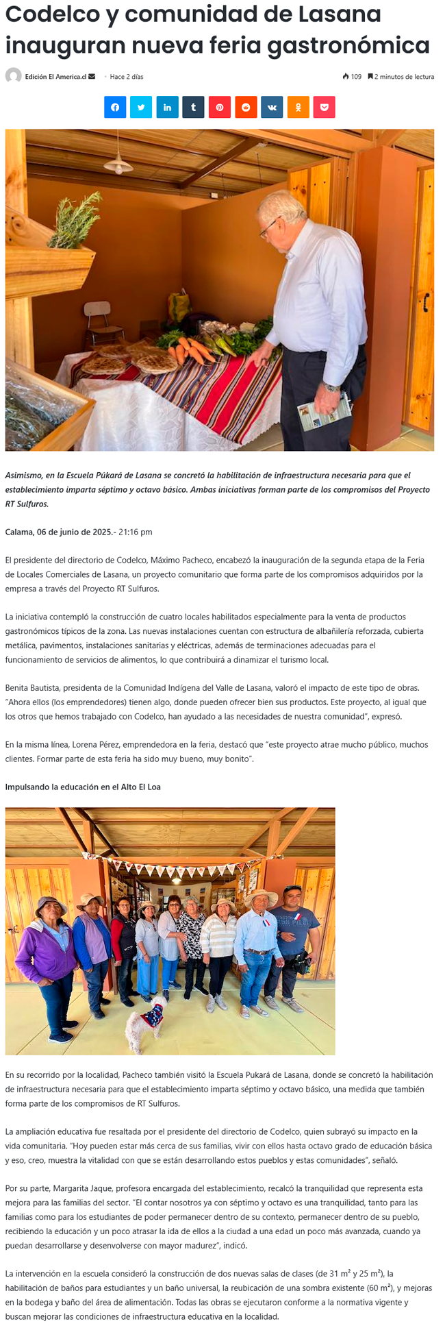 Codelco y comunidad de Lasana inauguran nueva feria gastronómica - (La Estrella)