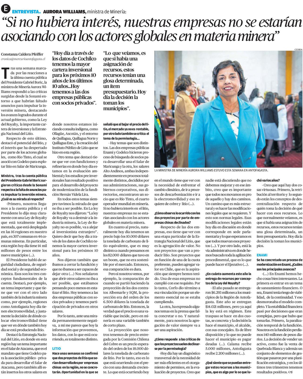 Codelco-SQM: “No haber hecho una licitación pasa por evaluar qué era lo más conveniente para el Estado” - (El Mercurio de Santiago)
