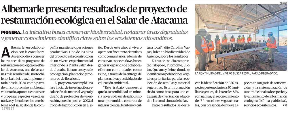 Albemarle y Ausenco presentaron resultados de ambicioso proyecto de restauración ecológica en el Salar de Atacama - (antofagastanoticias)