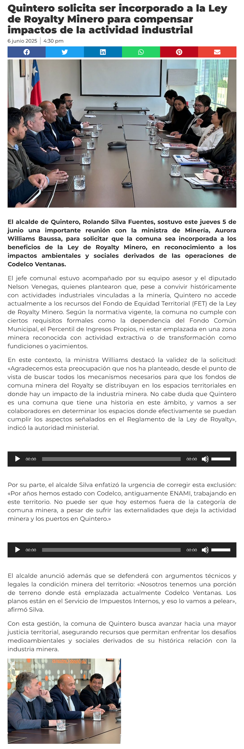 Quintero pide ser incorporado a la Ley de Royalty Minero para compensar impactos de la actividad industrial en la comuna - (puranoticia.cl)
