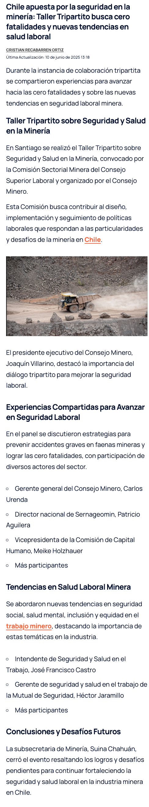 Comisión Sectorial Minera del Consejo Superior Laboral aborda avances y retos en seguridad y salud en la industria - (mch.cl)