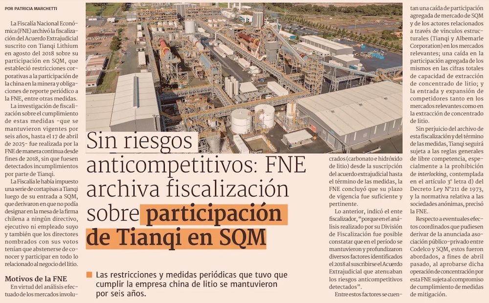 FNE archiva fiscalización de acuerdo extrajudicial con Tianqi - (El Mercurio de Santiago)
