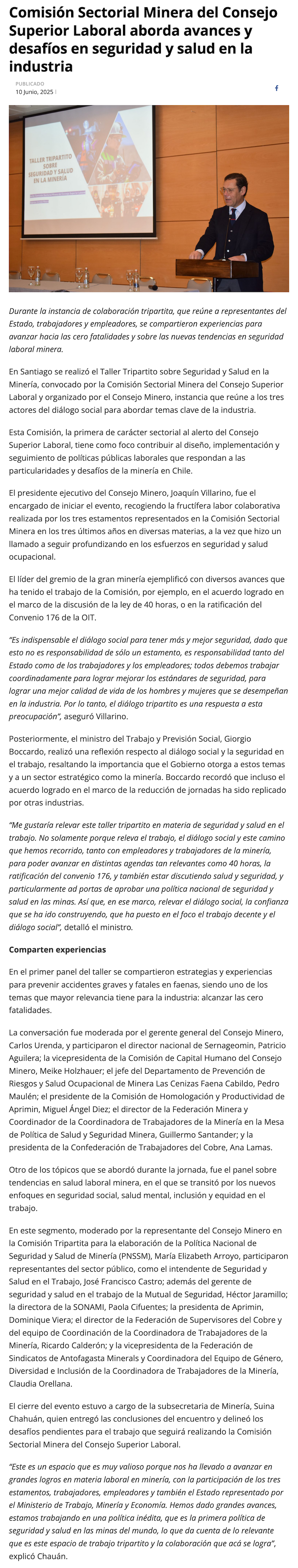 Comisión Sectorial Minera del Consejo Superior Laboral aborda avances y retos en seguridad y salud en la industria - (mch.cl)