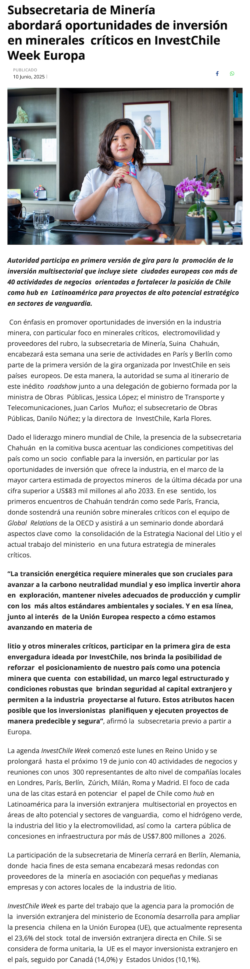 Subsecretaria de Minería abordará oportunidades de inversión en minerales críticos en InvestChile Week Europa - (g5noticias.cl)