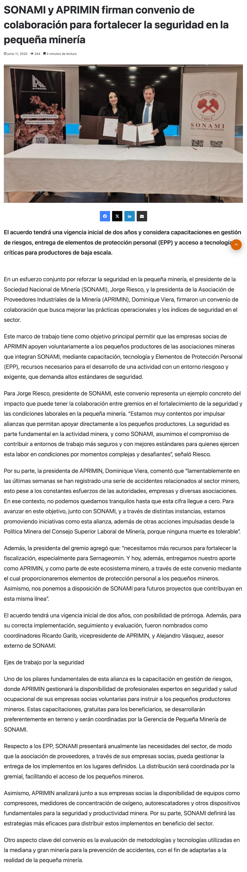 SONAMI y APRIMIN firman convenio de colaboración para fortalecer la seguridad en la pequeña minería - (Nostálgica Online)