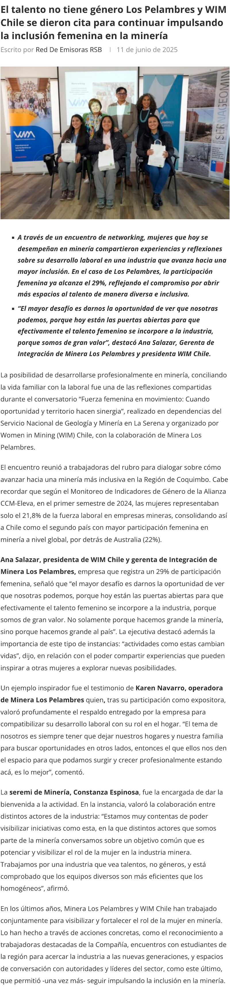 El talento no tiene género: Los Pelambres y WIM Chile continúan impulsando la inclusión femenina en minería - (madero.cl)
