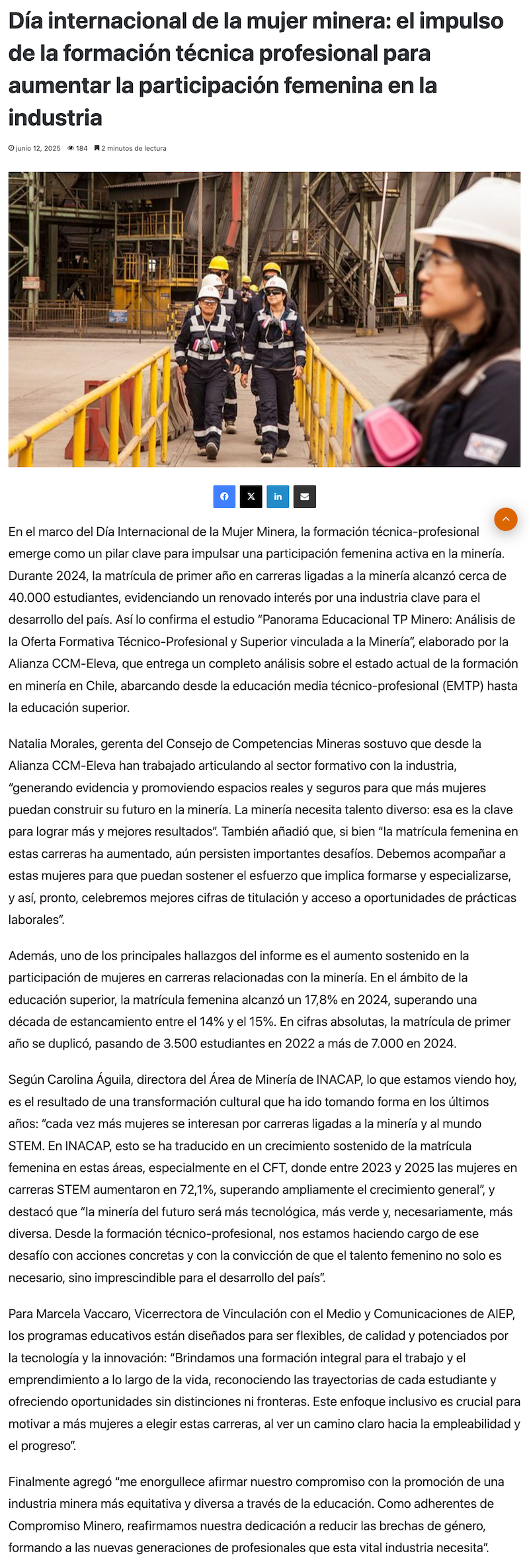 Día internacional de la mujer minera: el impulso de la formación técnica profesional para aumentar la participación femenina en la industria - (regionesnoticias.cl)